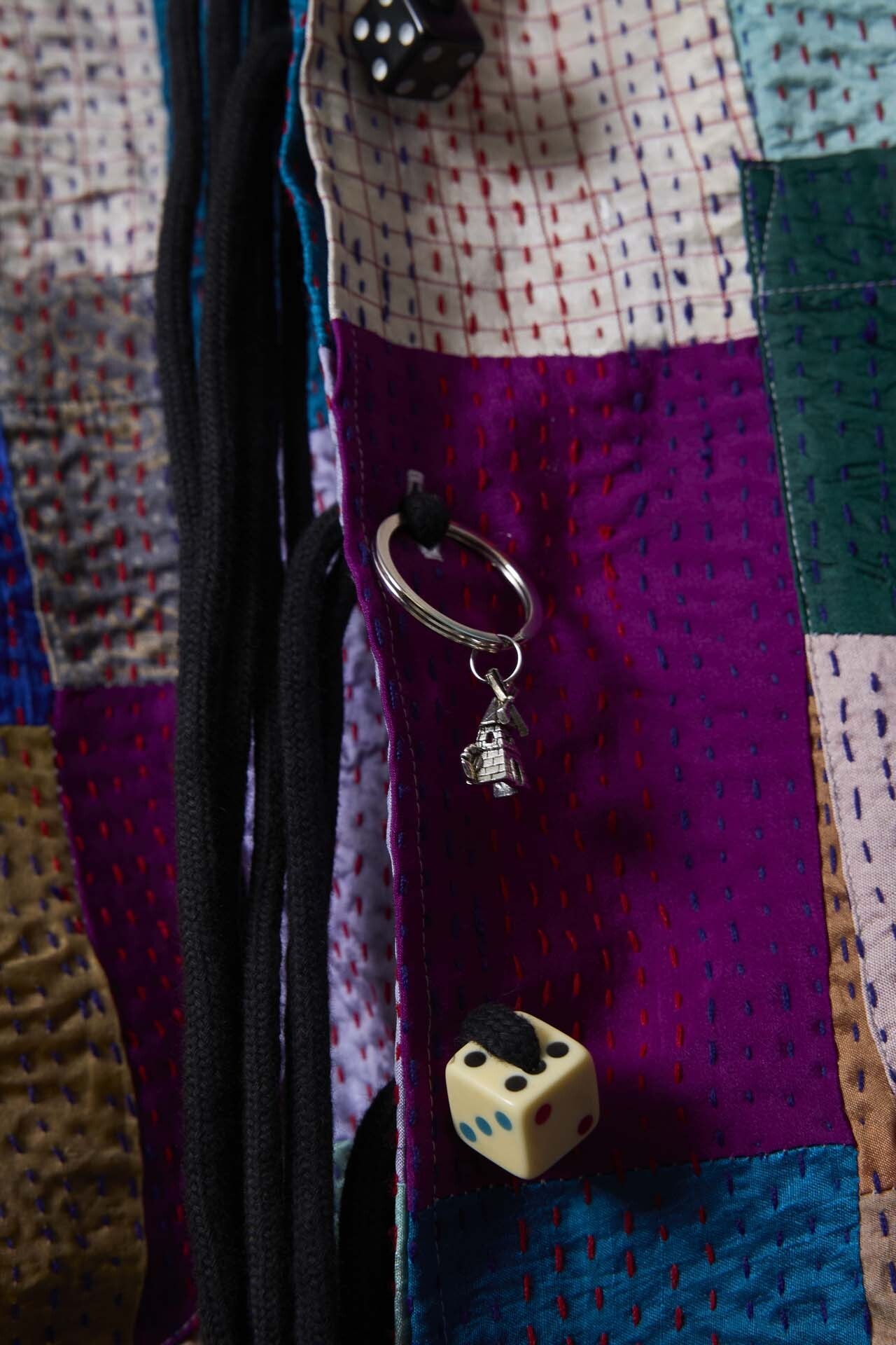 インドの職人が丁寧に斜めにパッチワークした、唯一無二のデニム生地を使用。