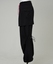 膝裏と裾のドローストリングでシルエットを調整できます。