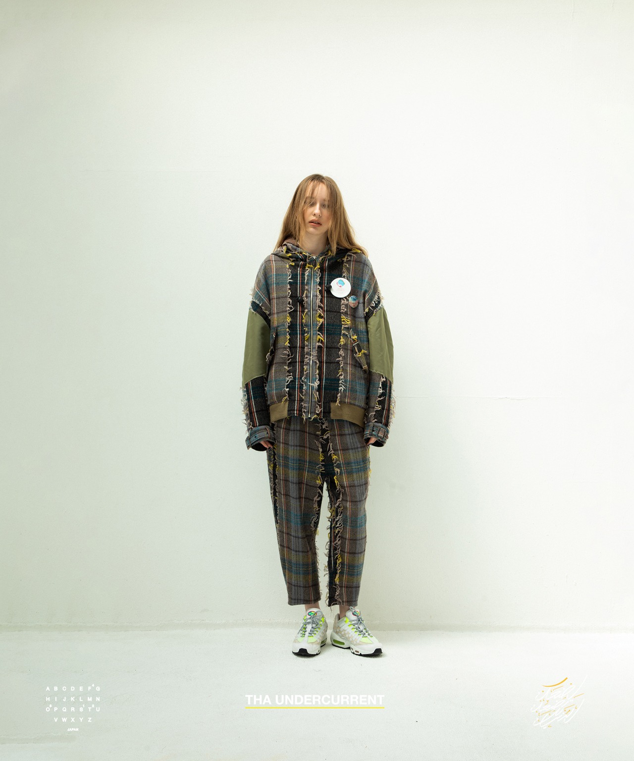 グランジ感のあるオリジナルウールチェック生地を使用。
