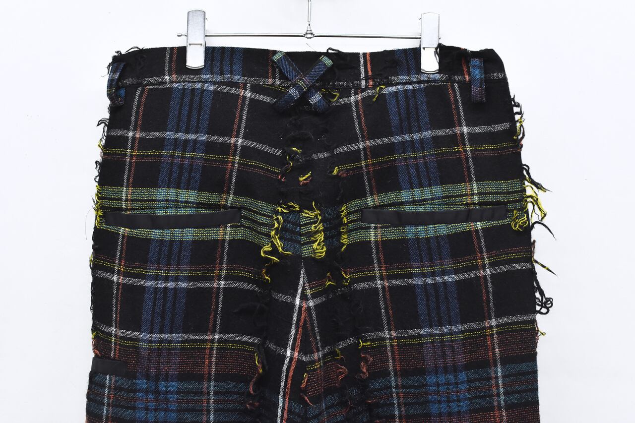 FRINGE WOOL CHECK WIDE SLACKS(BLACK)