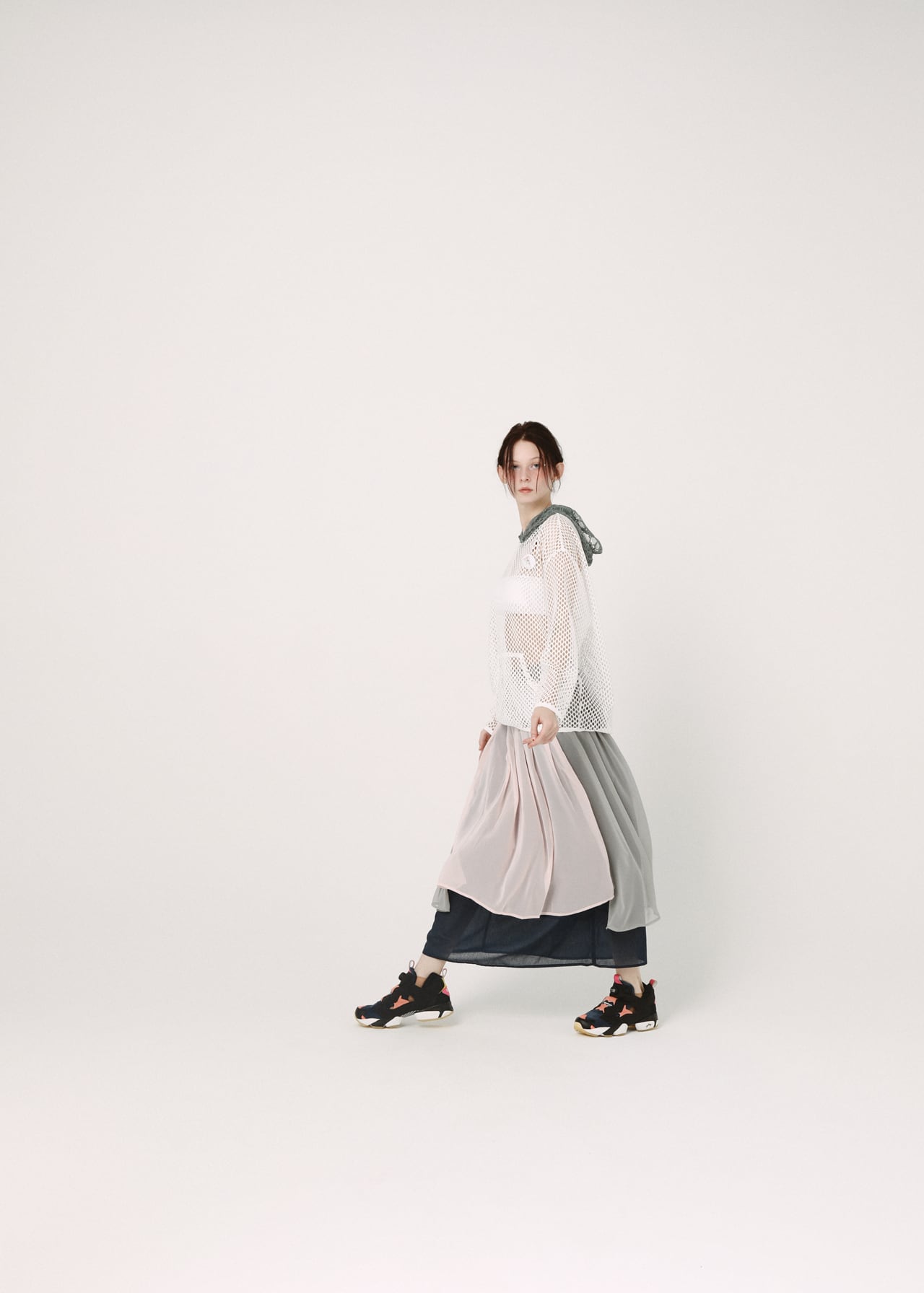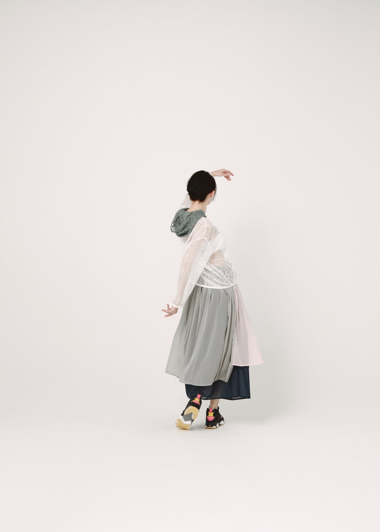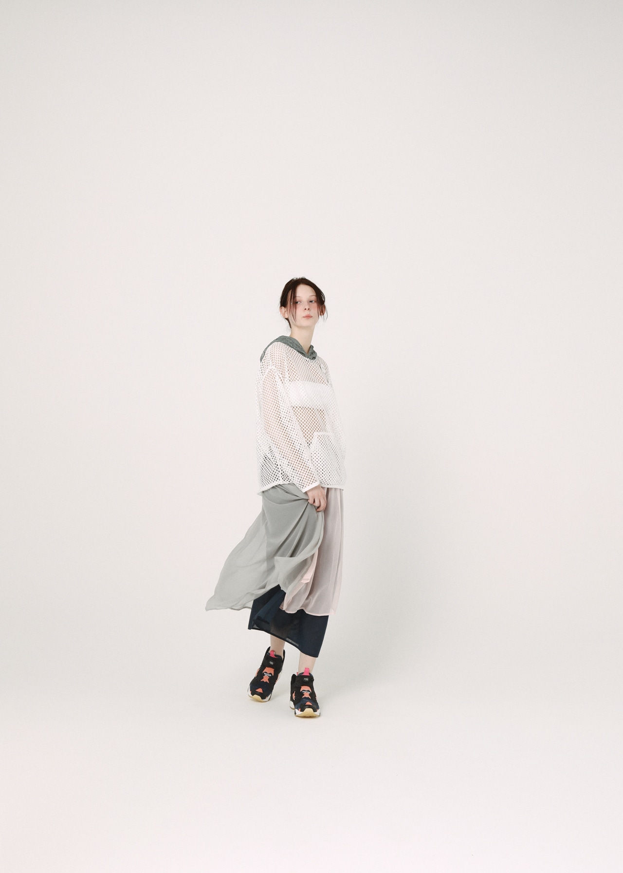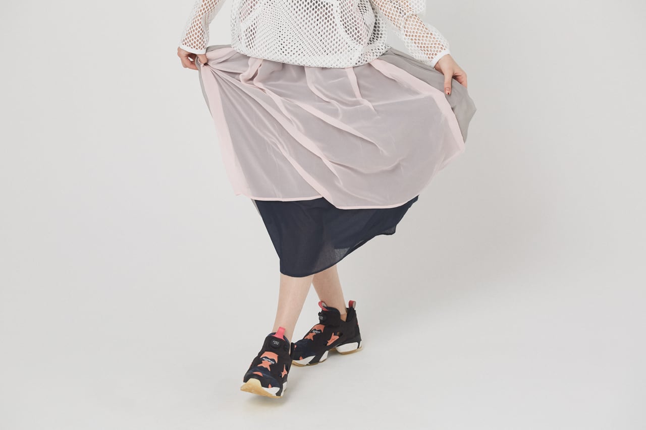 生地の透け感を利用し、着用者の動きに合わせてころころ変わる表情が魅力的なスカート。
