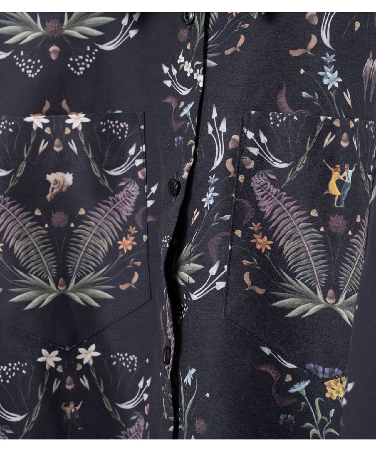 古今東西のダンスの名シーンを集結させたオリジナルのテキスタイルが魅力的なケープシャツ。