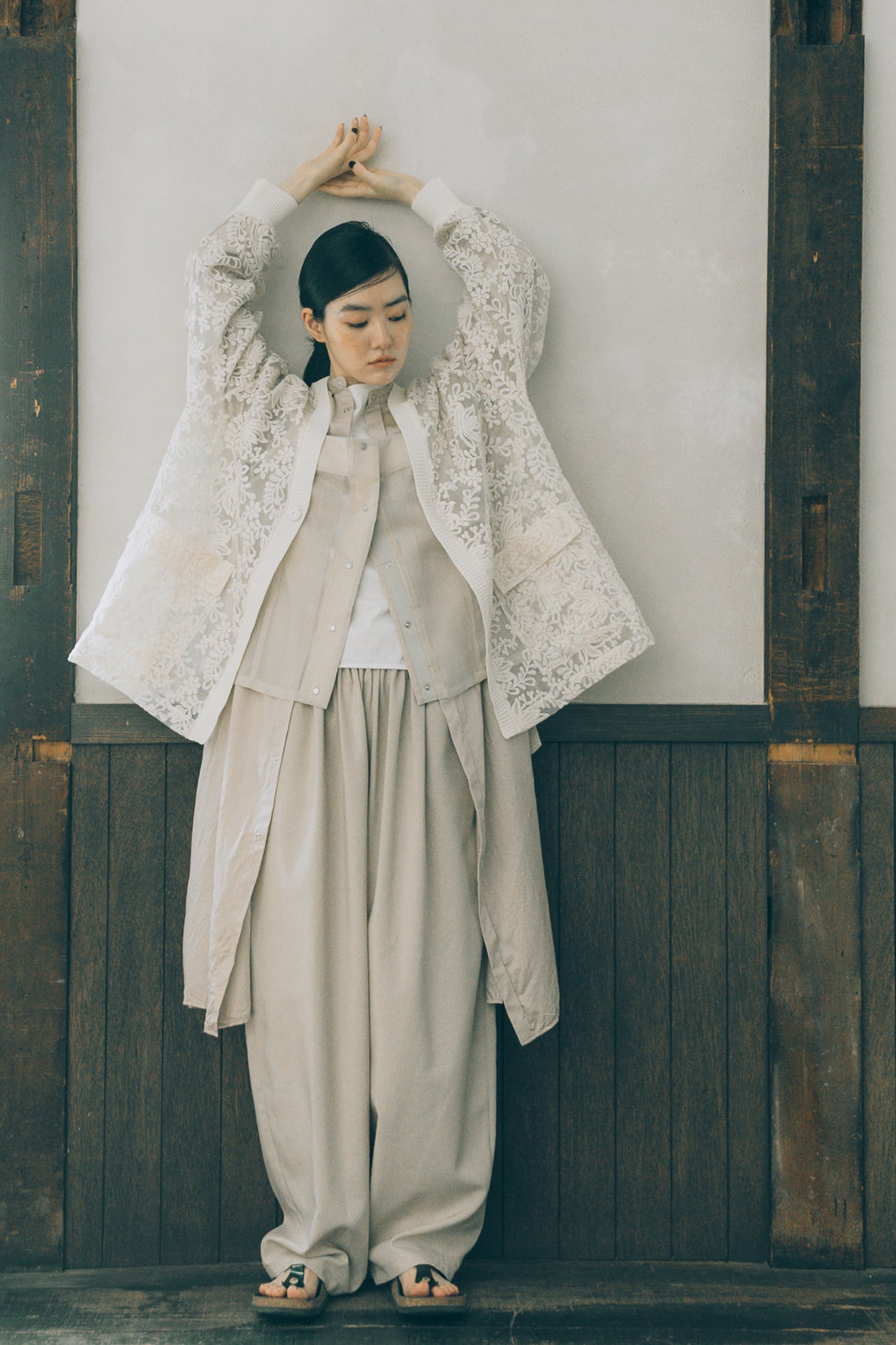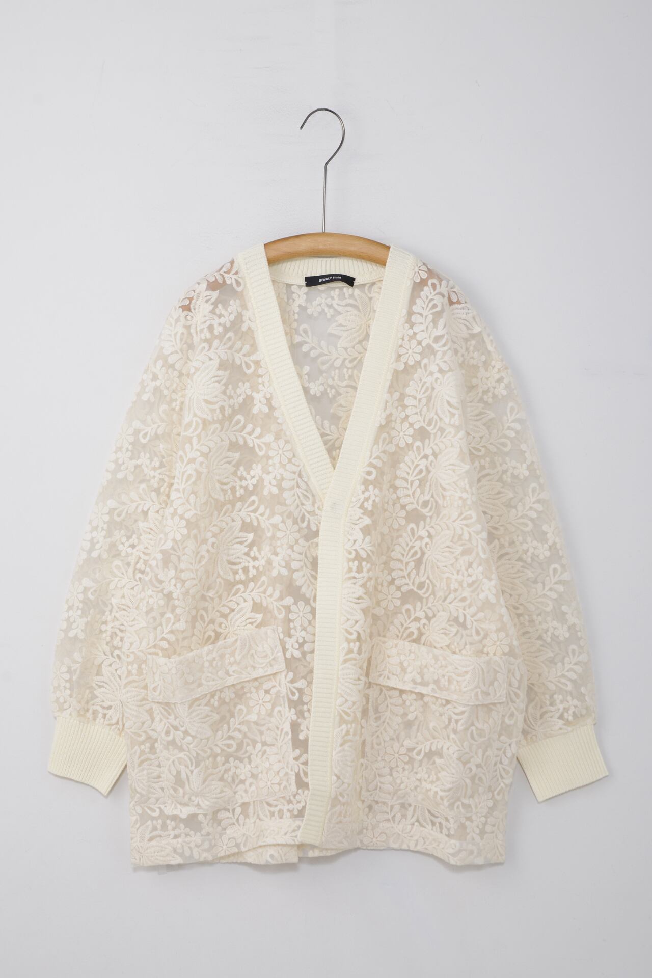 生成のレース生地は、透け感のあるオーガンジーに施された