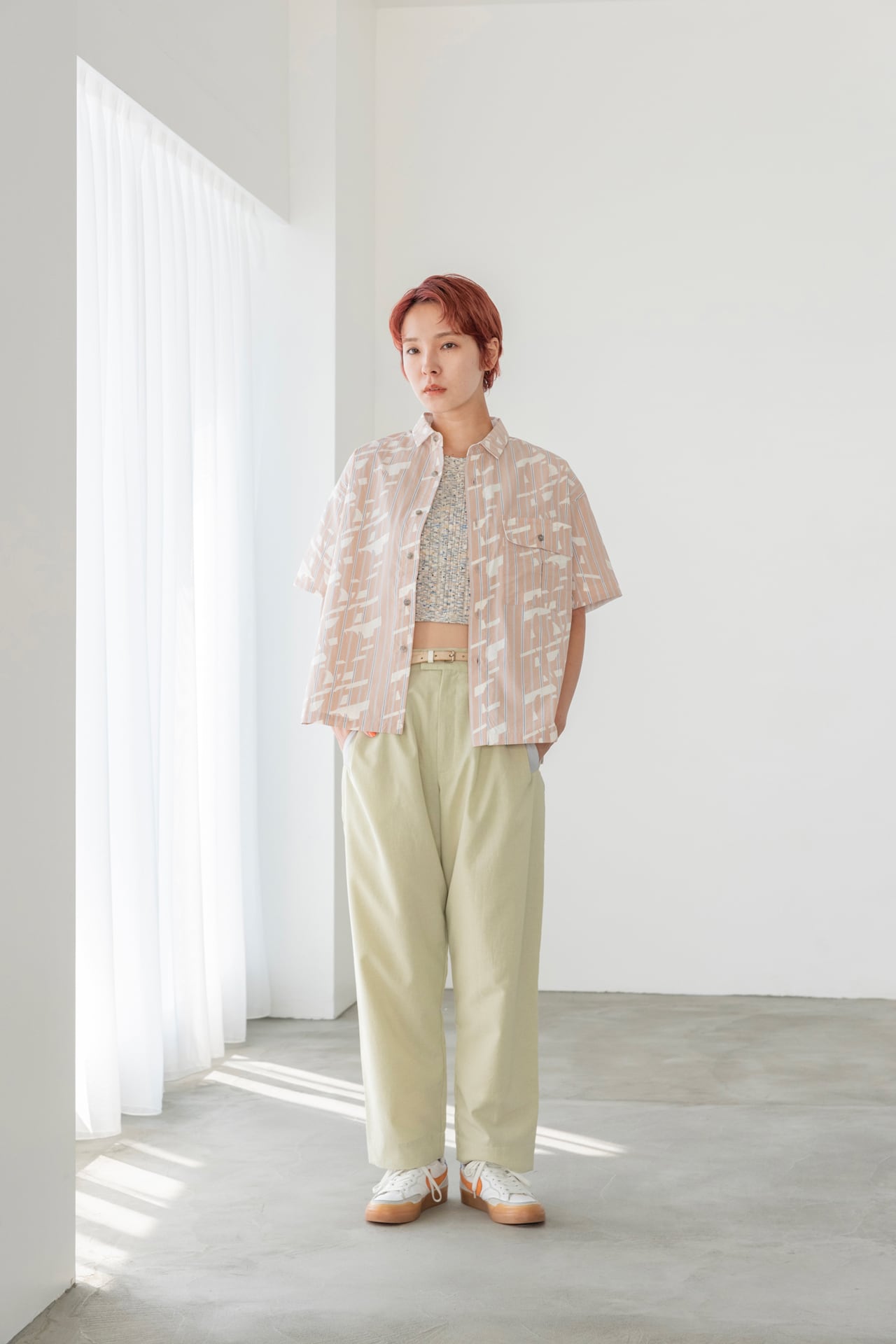 ストライプの生地を脱色してできた"INVISIBLE"なボタニカルプリントを