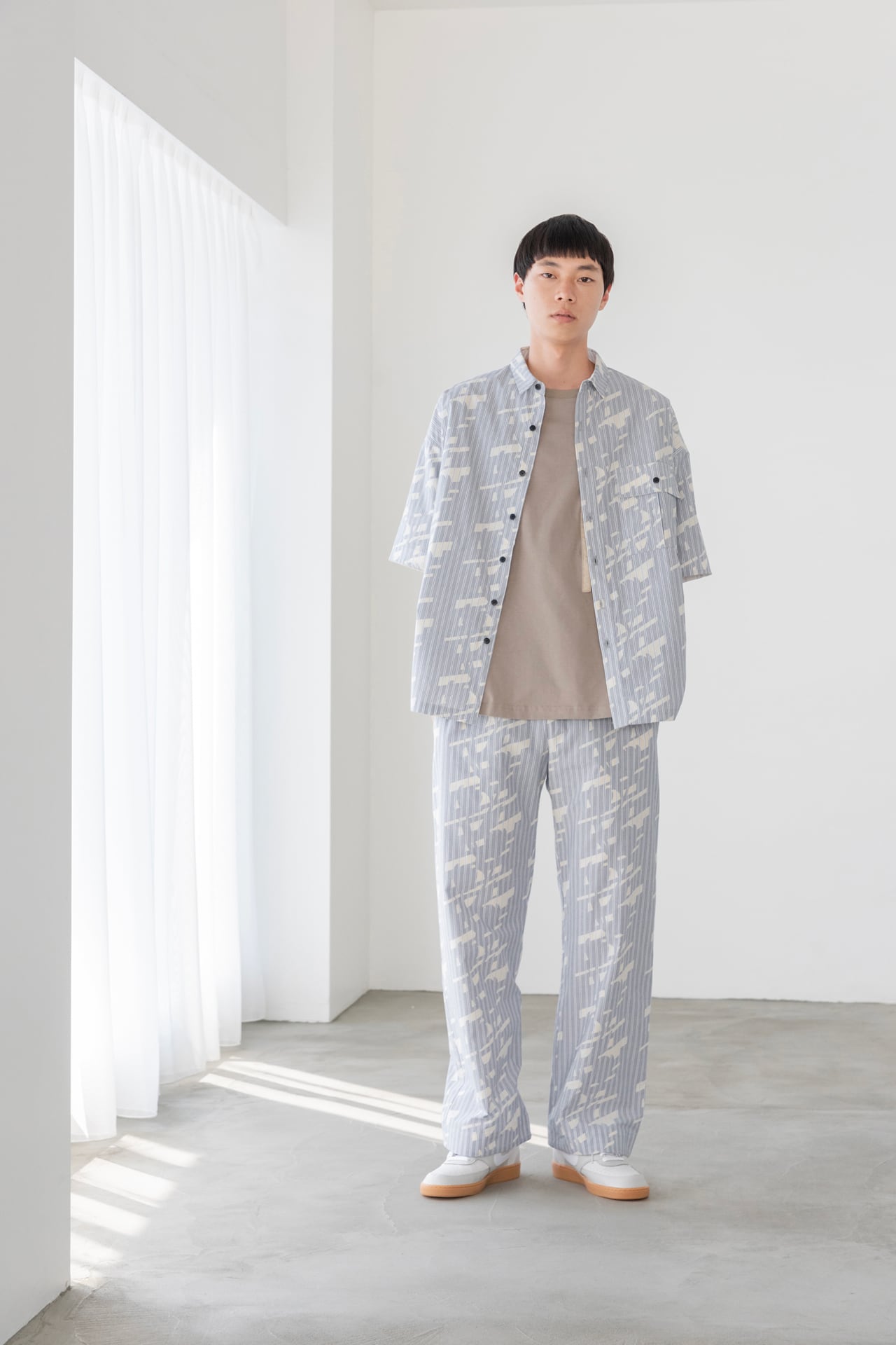 ストライプの生地を脱色してできた"INVISIBLE"なボタニカルプリントを