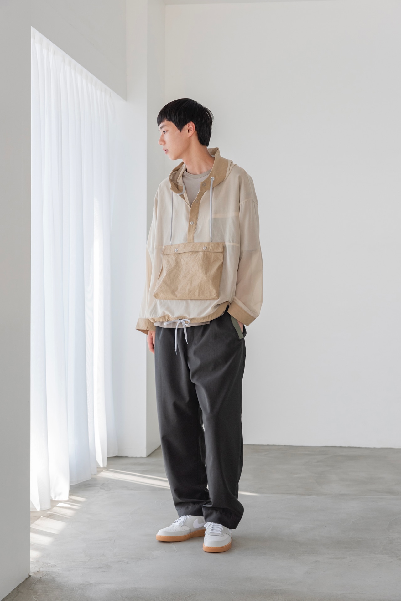 コットンオーガンジーがベースの透け感のあるたっぷりしたシルエットのパーカー。