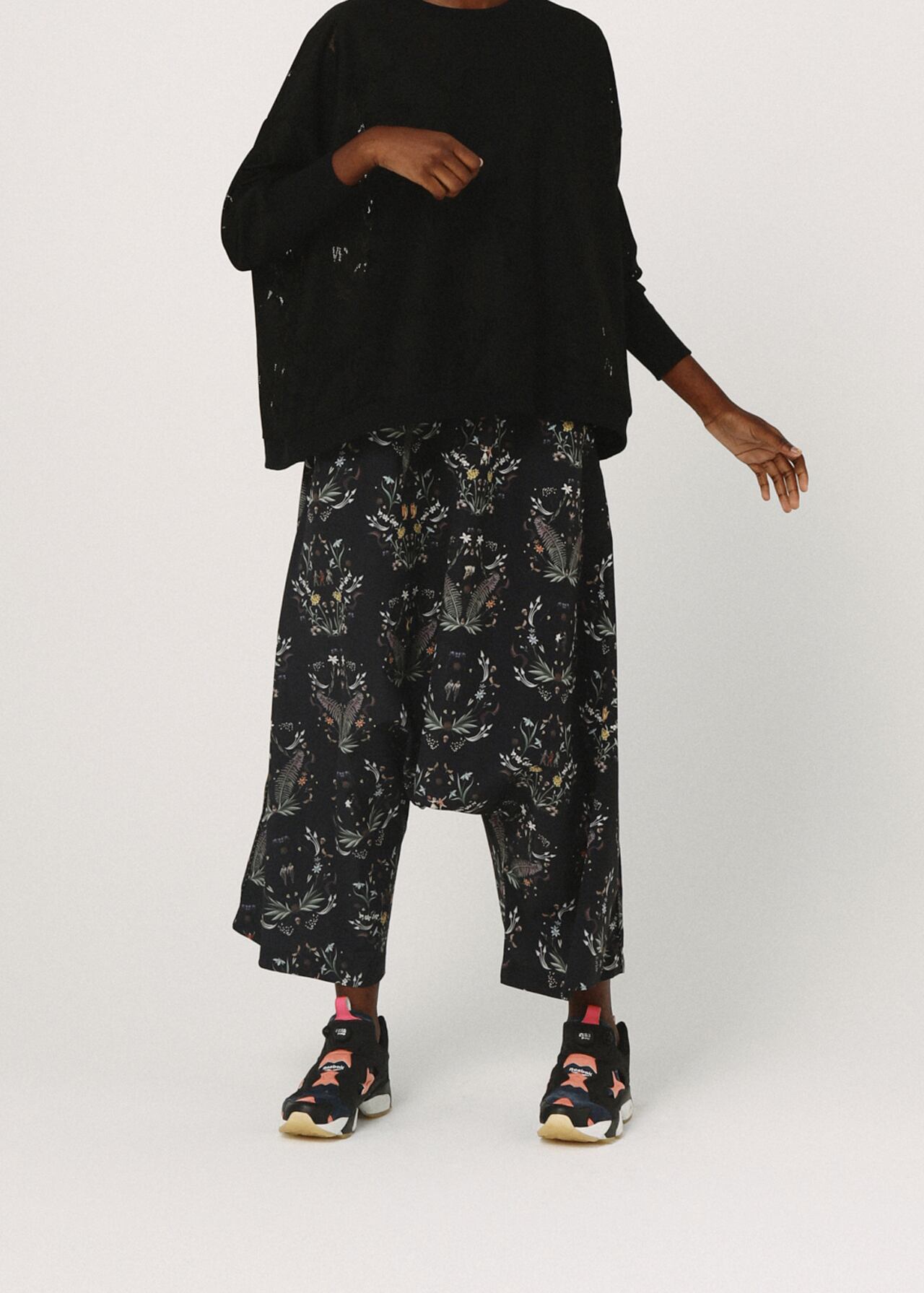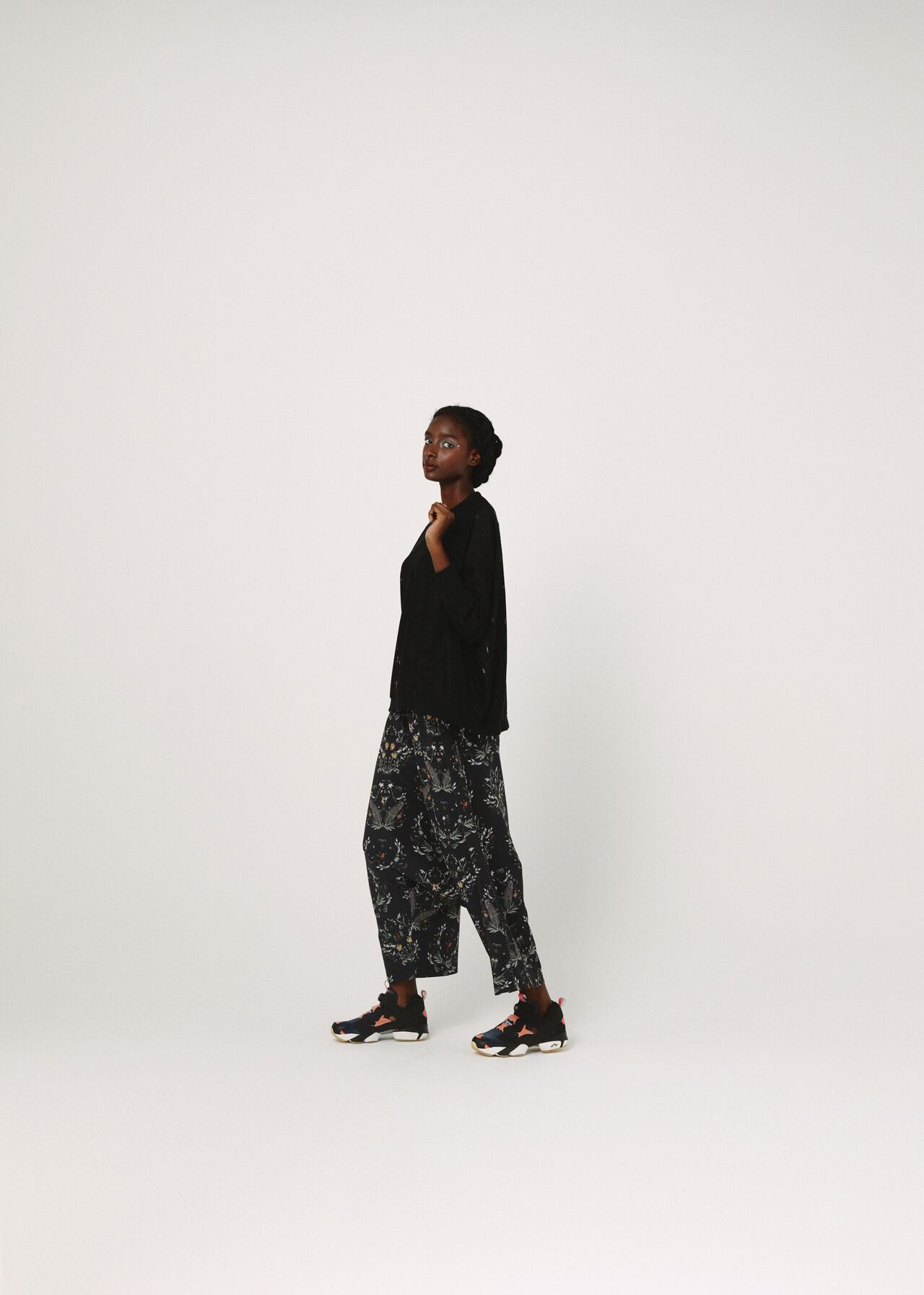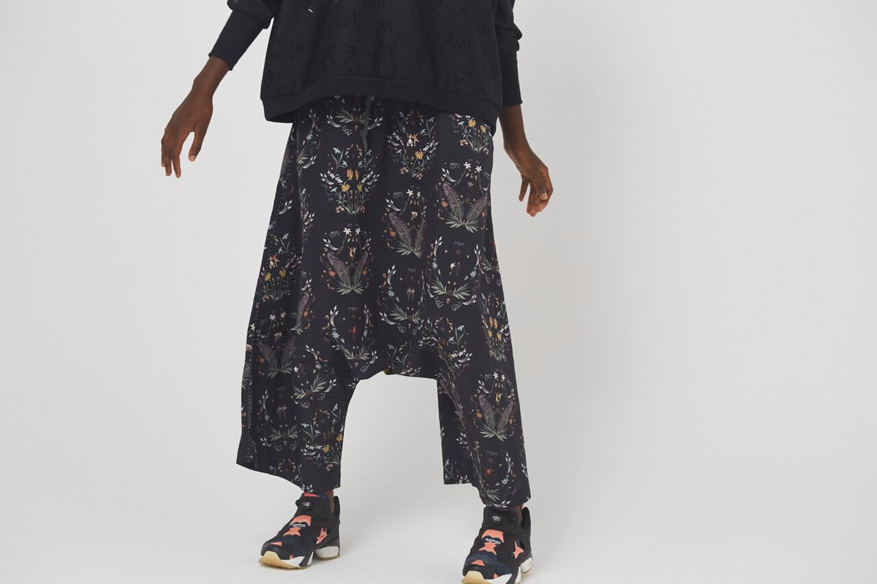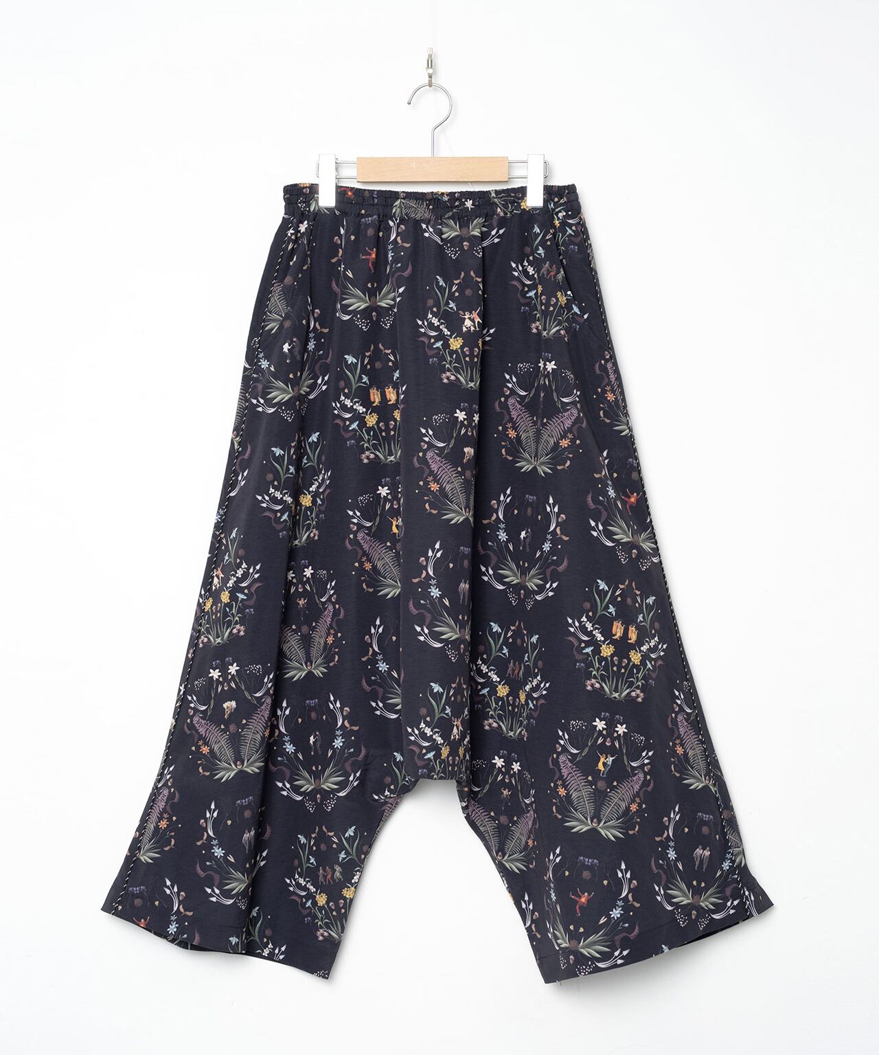 オリジナルのテキスタイルが魅力的なリラックスワイドパンツ。