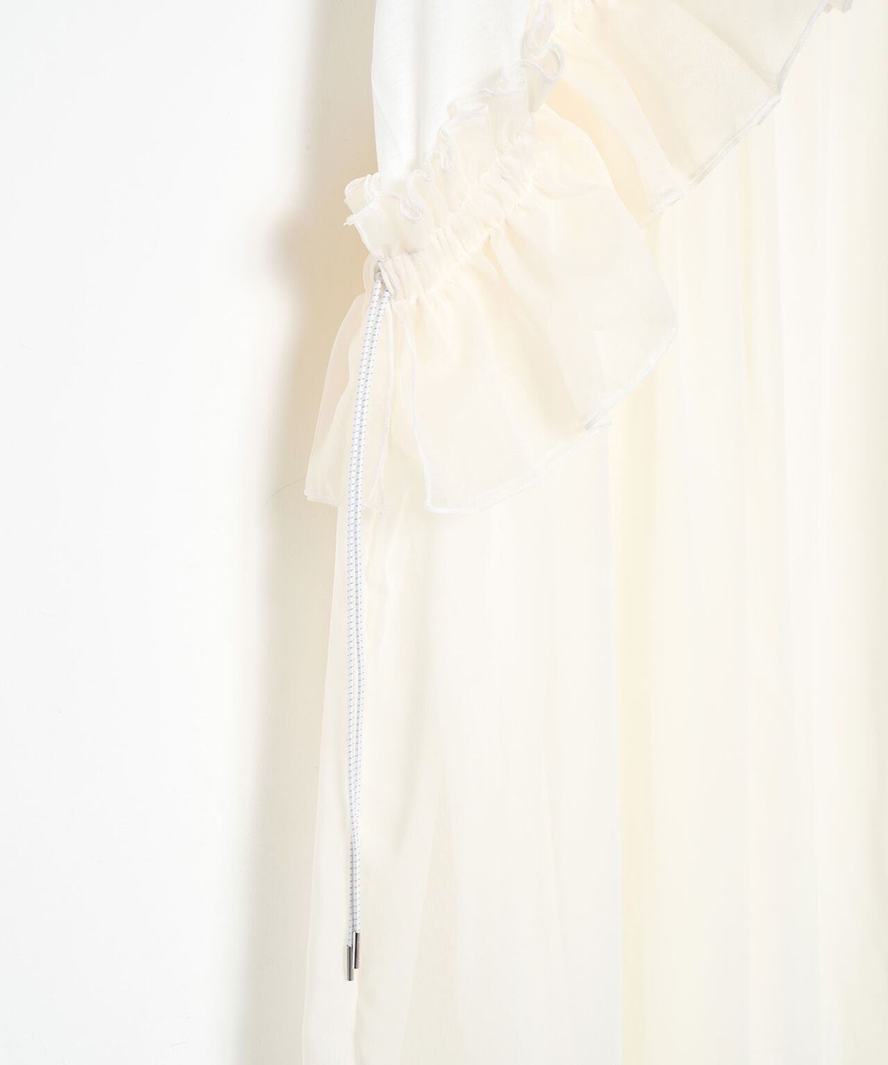 フリル部分に紐がとおっており、シルエットも調整可能。