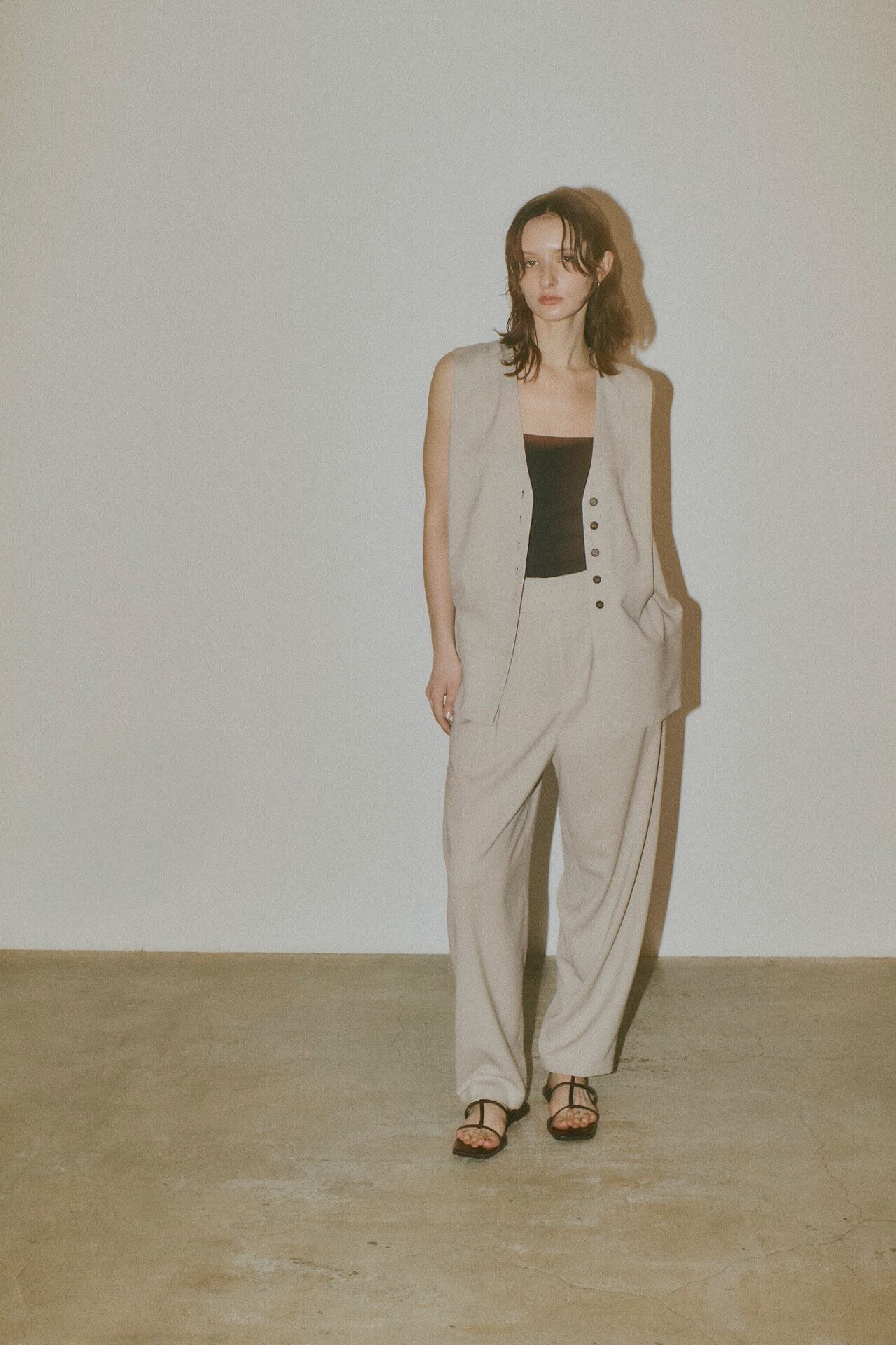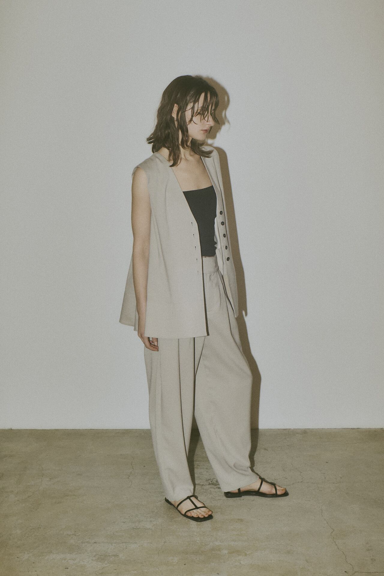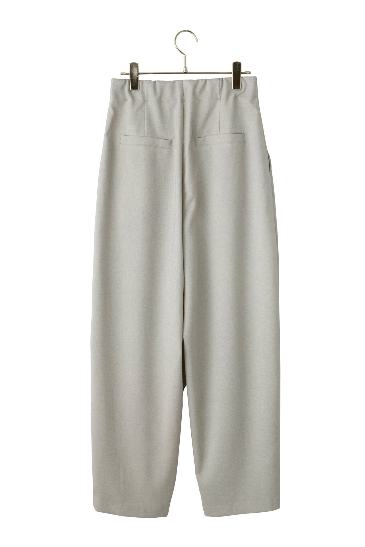 ウエストは太めのベルトとフロントのタックでお腹周りをカバーし、