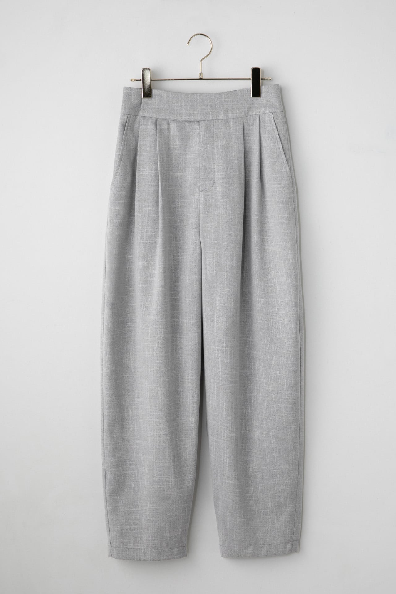 ウエストは太めのベルトとフロントのタックでお腹周りをカバーし、