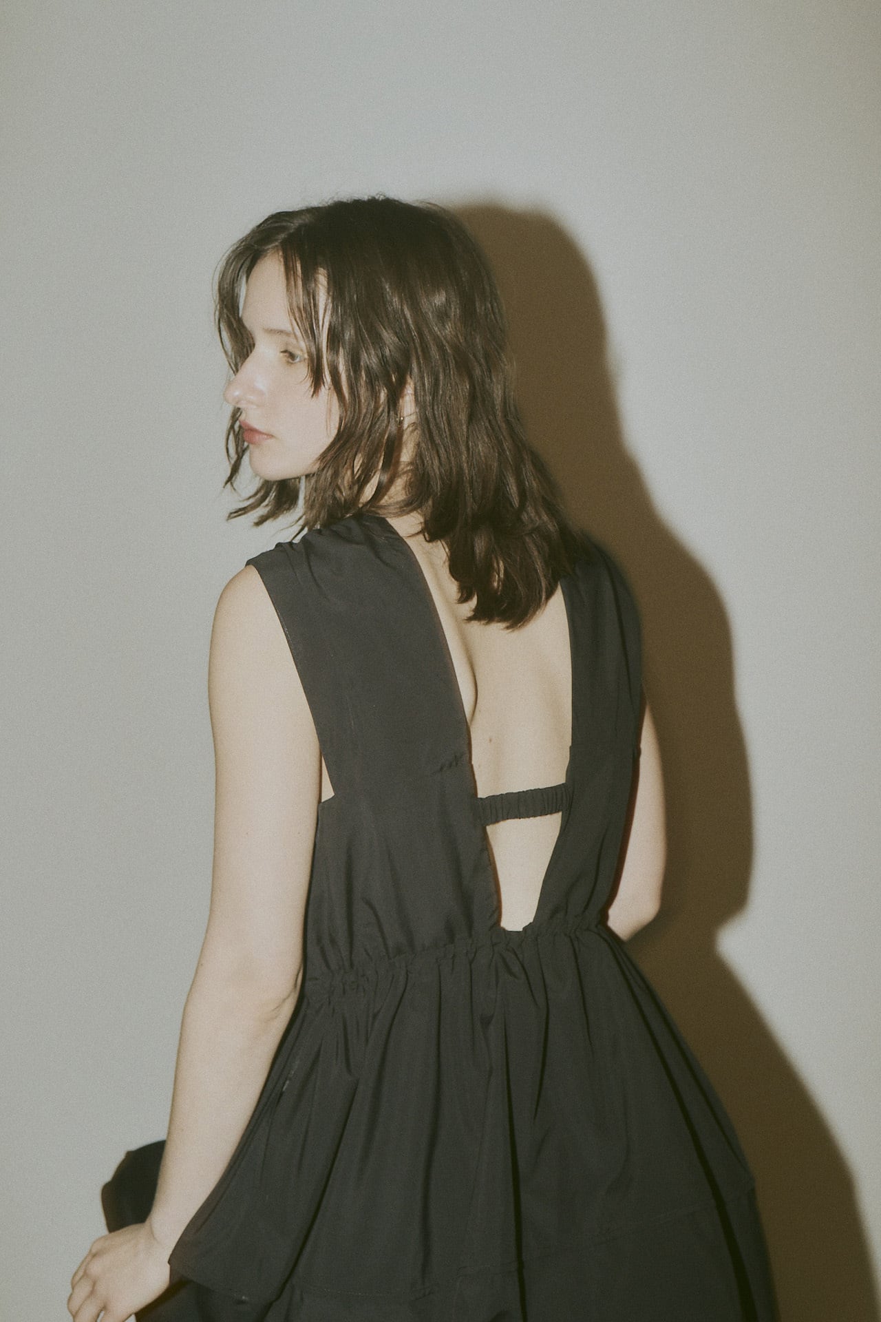 ギャザーとカッティングのパターン展開で作られた特徴的なシルエットが魅力の