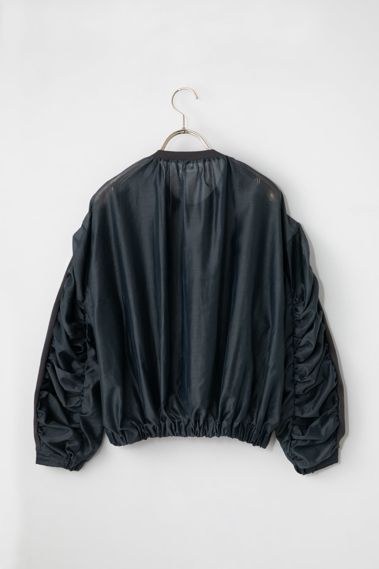 ブルゾンのように作り上げた袖や分量感たっぷりのバックスタイル、