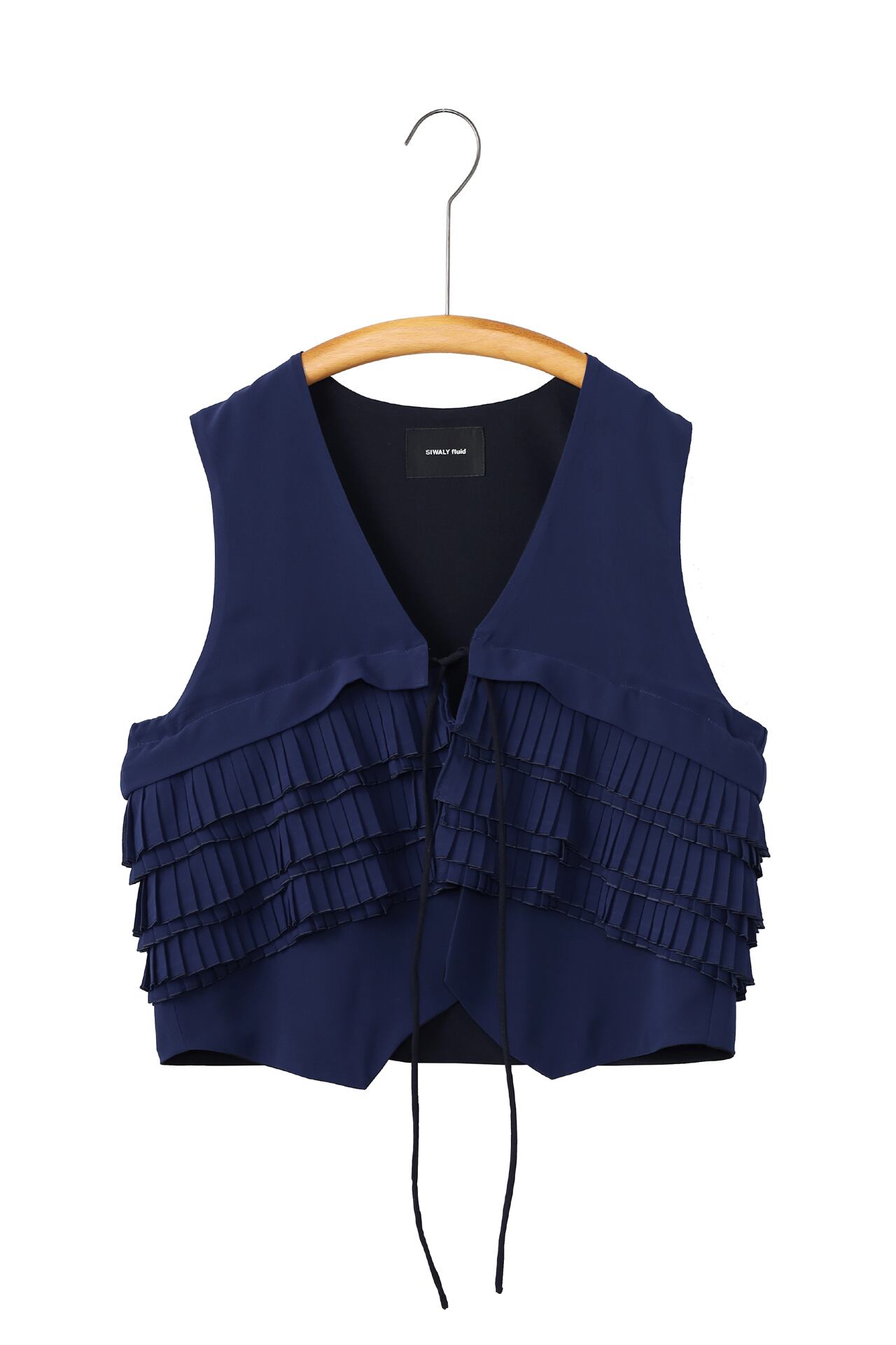 プリーツをかけたパーツを重ねてアクセントにしたベスト。